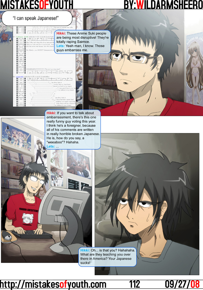 Really, one has to wonder if these two are even friends, considering that they never seem to have a nice conversation with each other. One also has to wonder why Hikki has an Ideon poster. And why him and Rets share the exact same expression. I kind of like this comic. I don't like it as much as the last one, but I still think it's ok. A podcast happened earlier on in the week. I talk with omo and lastarial about 5cm Per Second. It's a pretty good episode, so you should listen to it. I've signed up for Project Wonderful. It's working pretty decently right now. Please bid on this ad space if you want it. That's all I got to say. Real life's been making pretty harsh assaults on me as of late. I'm trying my best to find some work for the next two and a half months. I need some money for various personal endeavours. One's quite big, and other is quite... small, and cute, and probably smells good. Hopefully these three applications I'm filling out at the moment will get me somewhere. I just need money, man! Lots of summer shows are coming to a close, and the fall season is just about a week away. Zero no Tsukaima season 3 ended in usual 0nT fashion, in that in crammed way too much into one episode and nothing was resolved. But hey, you don't care, since Louise is hot, Siesta is hot, and Tiffania is hot. That's what really matters. Nogizaka Haruka ended pretty well, albeit predictably. One thing that kind of bothers me about the series is how, even in the last episode, the animation never got back onto the level that it was in the first episode (and arguably episode 7.) Hopefully they'll cleanup the show for DVD. It certainly doesn't look bad, but it could stand to look better. Both Koihime Musou and Macross just ended, but I haven't gotten around to them. Macross hasn't been subbed yet, and I haven't had time to get to Koihime yet. But I will. Windy Tales is pretty interesting. I thought the first two episodes laid on seriousness a bit too much, but episodes three and four had a good slice-of-life vibe about them. I can appreciate the art style, but I'm not really sure if I like it. I'm going to stick with it, even though I'm not totally sold on it. That's all for this week. I don't know what I'm going to do for next week, but with luck we'll see an update. |