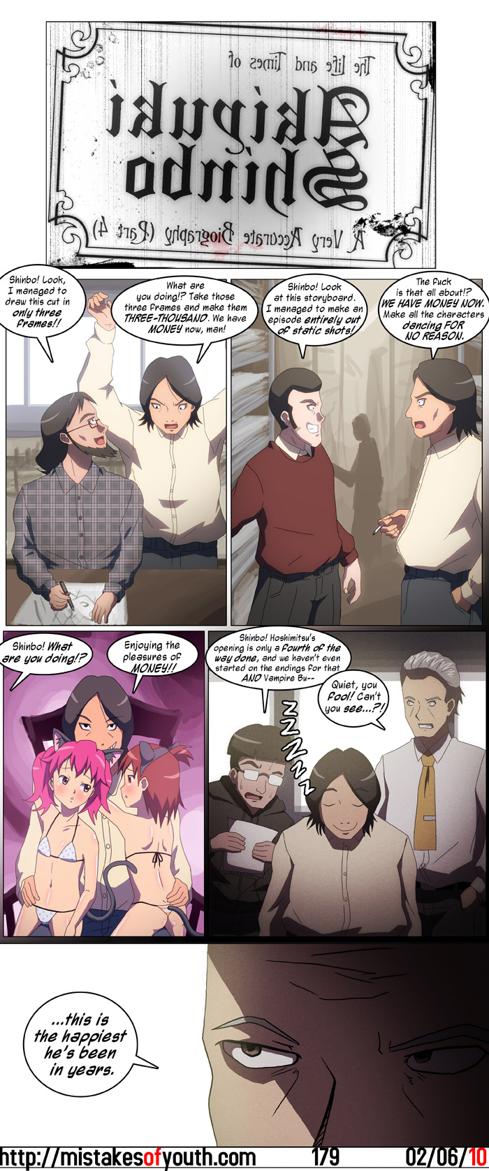 I think I'm going to give Shinbo a rest after this comic. I was going to say I have nothing planned for next week, but then I came up with a bunch of really stupid ideas, and fully intend to use them. (In Shinbo's head SHAFT animators look like Lupin and Jigen because I was listening to the Lupin III soundtrack while drawing this.) |