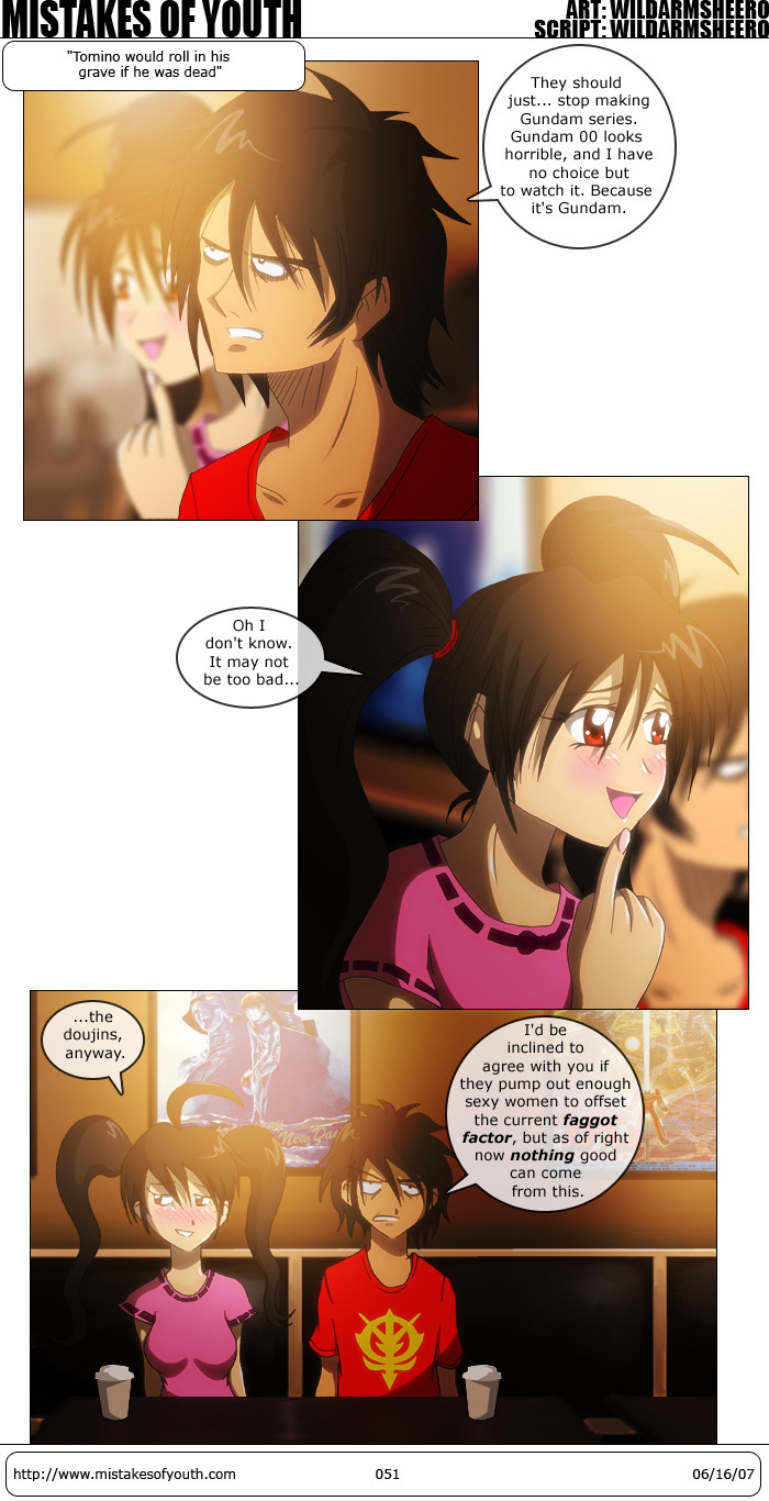 This comic isn't very funny. It's just me saying Gundam 00 will suck. Again. But the art is pretty so that makes up for it. Also, I think I'm making some kind of hamfisted point by having Ideon and original Gundam posters in the background but I'm not sure what exactly that point is yet. I don't have a solid idea for next week yet which is troubling. Maybe I'll talk about the Bokura No director, or mock Xenoglossia, or talk about Gurren Lagann. I dunno. Oh yeah, got a bit of fanart. It can be found here. I have a job now. It's not a very glamorous job, but it's work. Work to get these. Aww yeahhh. Maybe next year I'll actually plan ahead a not apply for something right in the summer :V :V :V Bokura No director apparently loathes the original work with every thread of his being. I wrote about it, er, tried to write about it, but then went off about Akiyuki Shinbo instead. Basically it's just troubling. While directing is a job for these people, in my mind I'd like to think they'd at least approach their work with some enthusiasm. I mean they are producing "art", so it's good to be somewhat enthused about what you're doing. Ah well. I hope this doesn't affect things too much. It's gotten to the point where I'm less watching Yamato for entertainment value and more for educational value. I think a lot of it is fairly amateur, to be honest. Suffers from monster of the week, which doesn't bother me in general so long as what's happening is interesting. In Yamato it's very hit or miss. But it's good to see what newer anime took from this work, and I plan to continue on with it, the second season (with hopes it'll be better) and the movies, just to see what's so great about Be Forever Yamato. Summer season is actually looking pretty rad. Despite what I've said in my podcast which I've still not yet edited (ugh too many things to do) things are looking pretty ok. Outside of the obvious sequals, some titles that stick in my mind are Tetsuko no Tabi, Doujin Work and Sayonara Zetsubou Sensei, directed by Akiyuki Shinbo. I declare these all best of next season. Anyway, a lot of things to do this Saturday, and I got work from 3-9. Ugh. I swear if those other interviews work out I'm dropping this like a bad habit. |