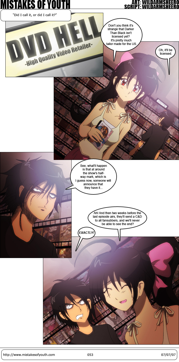 Was going to post this today but it kind of got lost between my dentist appointment, work and me operating on 4 hours of sleep. Anyway this was written like a week before DtB was licensed and completed just as it was licensed, hence the title. Haruhi-centric comic planned for next week, and I have about 4 weeks of ok comics planned out. I would write more but Ifm gonna write about that new awesome Shinbo show on the blog. |