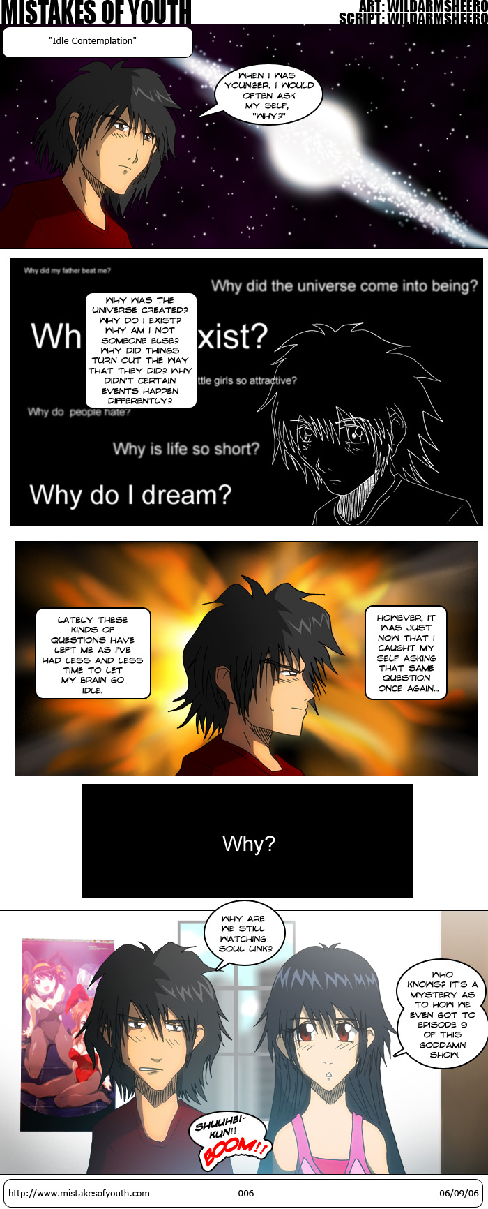 Wow, this comic actually isn't a disaster. Well, it'll look like one in a day. Let me enjoy this moment. The lineart for this comic is good. I probably spent extra time on it just to spite Soul Link's awful drawings. The last panel is a little off, but that's always the case now isn't it? So, I turned 18. Nothing special, really. I did get cool stuff. Some DVDs (Kamichu, Seed Destiny, IGPX, Girls Bravo), some more Cromartie and GTO manga, some Gundam posters, a Hisashi Hirai artbook-- good stuff. Oh yeah, "Chibi Vampire". God, I want to kill TokyoPop. I'm sad at Bandai's Seed Destiny release. I thought they knew better, but I guess they didn't. They went and replaced the Japanese credits with English credits. Now, I don't mind too much if they're formated well; but they wrote them in the stupid bold verdana font that makes them big and distracting. At least they're timed well, more than I can say for how Media Blasters handled the Genshiken opening. For the ending sequence, they had the same awfully formated text scroll up fast; obstructing most of the image. The DVD also has no extras at all. What crap. I haven't actually watched past episode one on the DVD, so I can't comment on translation or anything. I suspect they'd be dubtitles, though. GTO volume 5 has the worse typesetting in the history of the world. I could do a better job, for free. Fuck you TokyoPop. (Yeah, I know it came out eons ago, but I just got it now.) I'm starting to like Geneon a lot. All of their releases are so nice and polished (albeit, I only own about 4). It's just good to see that some companies are putting in effort to make their DVDs look nice. It's just a shame that their (and many other companies') translations leave honorifics out. I mean, "The God Yurie" is just awkward sounding, while "Yurie-sama" sounds perfectly natural (hell, I'd prefer something like "Lord Yurie" even). Also, things like -kun, -chan, etc. help imply the kinds of relationships between the characters. When these are dropped, something is lost. Well, not like it makes any difference to me, I'm not watching the dub and I listen to the Japanese (sometimes I just don't read the subtitles-- yeah, I'm that good. ::rolls eyes::) On the other end of the spectrum, fansubs annoy me when they leave stuff untranslated. Honestly, just fucking translate "Itadakimasu" as "let's eat" or something and don't put a stupid note up top saying, "ITADAKIMASU IS WUT THEM JAPANS SAY WHEN ITS TYM TO EET GRUB". Ugh, I seem to have gone away from what I meant to talk about. I was going to talk about Geneon's Kamichu release. It comes in an awesome box (see Bandai, it's possible to make a box that's not total shit!), with a nice wallscroll and a bunch of nice pencil boards. The DVD is authored beautifully, with a nice professional polish. The menu screens are nice; they're easy to navigate and they load quickly. There's not much in the way of extras; just a picture gallery with occasional staff comments and some Geneon previews. Most of the extras are in print anyway, so this isn't much of a problem. To be honest, the only reason I'm buying this series is to finish it, as the subbers only really got up to episode 5. I still feel that the first 2 episodes are slow, but I like episodes 3 and 4 a lot. 4 is rather hilarious, actually. I think Matsuri is really hot. I want all kinds of naked pics of her, now. Yurie is cute, of course, but I already got enough pics of her. Matsue is cute in her own way, but I prefer the other two. I don't think I have to tell you all how awesome Suzumiya Haruhi no Yuuutsu episode 10 was. I mean, you all should seen it. In your dreams. It is that awesome. Too bad they seem to be catering to the guro crowd, though. Anyway, I'm burned out. That's all. god i love girls bravo |