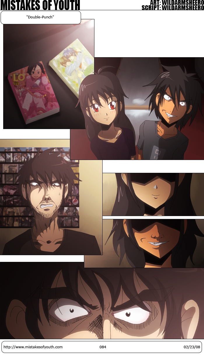 I was quite surprised to see that when I woke up this morning (at around 11am) that the site had already garnered 2000+ visits, which is more than I usually get in a single day. Right now it's up to 3,500. Turns out someone posted one of my comics on Stumble Upon, and the site seems to be getting a lot of traffic from that. I can't say I'm not happy, but the art in that particular comic is so godawful, I feel bad about it being exposed to so many people. Oh well. Traffic is traffic. Thanks to whoever posted it. Anyway, on to this comic. This is probably the worst comic for a new reader to stumble upon (LOL) given it requires knowledge of the characters and running gags. The point of this comic was to bring all the main characters together, since up until now, they've not all been in the same comic. I kind of like this one. The idea of Rets and Tina doing a double assault on Brad with horrible porn is amusing to me. Not sure if it will be for everyone else. The art in this comic is fine. Nothing amazing, but solid. I like the panel layout. Lately I've been making an effort to have things flow better. This one was easy since there were no speech bubbles, so that was one less variable to worry about. I watched The Cockpit the other day. For those who don't know, The Cockpit is a set of OVAs based on old Leiji Matsumoto comics about WWII. I thought they were fine. The subs I got weren't the greatest, so that probably played into my impression of the work as a whole. I'd like to see a professional release of this, since I'd most certainly buy it, just to see it in the hands of a competent translator. That's all I got for now. I know for certain there will be an update next week, since I actually already have that comic done with. |