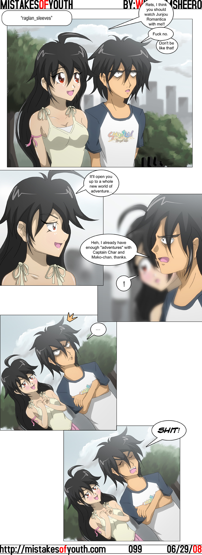 I'm surprised my last comic was so well received, considering I thought it read something like an advertisement. I guess people can relate. The art in that comic was ok-- I like how some things turned out, but overall it was slightly below-average. I hope everyone enjoyed the fanservice (that I totally ripped from ZSZS) though. The current comic up looks slightly worse, but that said I redrew it something like three times. My job/job training really threw me and it's affected my drawing for some reason. I'll shape up by comic 100. You'll notice that Tina is wearing something she wore previously and that Rets is wearing a new shirt. Someone brought up in the comments for the last one that Tina changes clothes in each comic and Rets has been wearing the same shirts for forever. I was planning on having Tina reuse outfits at some point, but designing new ones each week just became too much fun... The site was mentioned in various places on the web again, and these plugs were noteworthy enough to post about. The first one is in the Friendster journal of some mentally challenged little girl. I think it's hilarious when people take my joke posts seriously, and even more hilarious when they think I look like a stereotypical nerd. I love it. The next one is a plug in a Japanese blog which seems to have found me via that Ascii Weekly article. The best part is how he warns middle school kids and lower not to go on my site since it's foreign. lawls. In further site news, I got a Twitter on a whim. As you can see, I've integrated it into the site sidebar, but I'd like an RSS widget thing that doesn't advertise itself. Anyone know any good ones? Also, I'd like to know how to make this appear on the blog. Finished Cromartie High School yesterday, and it was ok. I've only read four volumes of the manga (and need more) but I really like how the original handles itself better. The anime tended towards surrealism, whereas the manga was straight up realism with very absurd things happening, which I find funnier. This isn't to say that the anime's bad, because it's generally entertaining, but it really doesn't hold a candle to the manga. Also, what's up with ADV's subs? Do punks really use the word "fudging"? I mean, if you're going to use an expletive in your translation, don't half-ass it. This is especially irritating when I know that ADV drops the F-Bomb in their English dubs all the time. I also finished Nurse Witch Komugi the other day. Some may remember when I started it, but now I've finally secured the last volume and have finished it. I would say I should have seen this years ago, but if I watched this years ago I'd totally miss the Tiger Mask reference in episode three or four. This show is crawling with classic anime references, and I love it. It also really helps that Komugi is adorable, and the show's generally fun and cheery atmosphere makes it a joy to watch. I'll be moving on to Magikarte Z soon. That's it for this week. Hopefully a comic 100 will happen next week, but if it doesn't then expect it the week after next. I really want it to look good! |